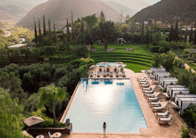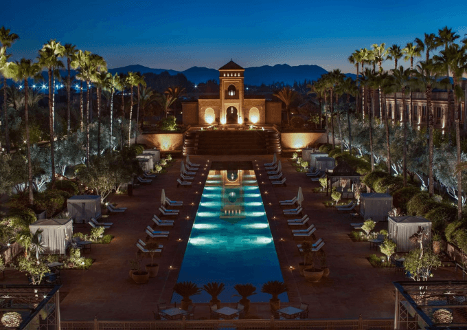 The resort features a curated collection of luxury rooms, suites, villas, and palaces, many with private heated pools, elegant outdoor lounges, and panoramic views of the Atlas Mountains. Its exceptional design makes it one of Marrakech’s most photogenic luxury hotels — a favourite among celebrities and discerning travelers seeking exclusivity.